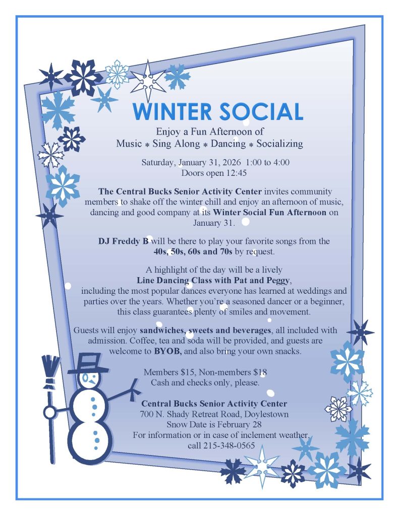 | January 31, 2026 | Winter Social | 1:00pm – 4:00 pm |